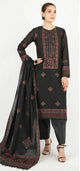 Elevate your winter wardrobe with this elegant black embroidered khaddar 3-piece suit, designed with a perfect blend of tradition and sophistication.